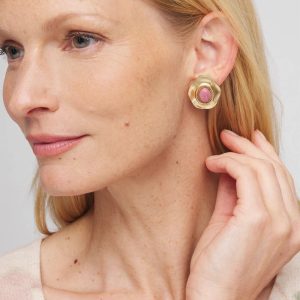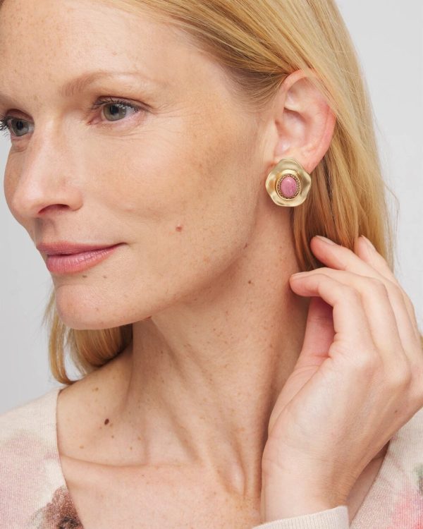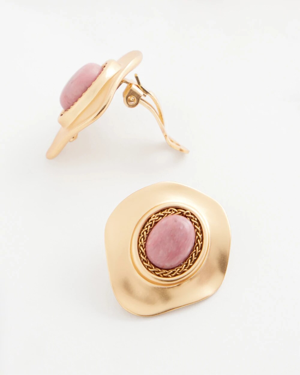 The perfect jewelry turns heads and makes you feel empowered. Glamorous pink hues, rich golden metals formed into organic shapes help define these pretty clip-on earrings. Pair with the matching necklace and cuff bracelet from Chico’s Regional Gems Pink Collection for the full effect.