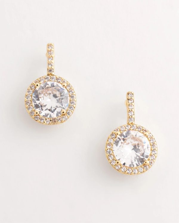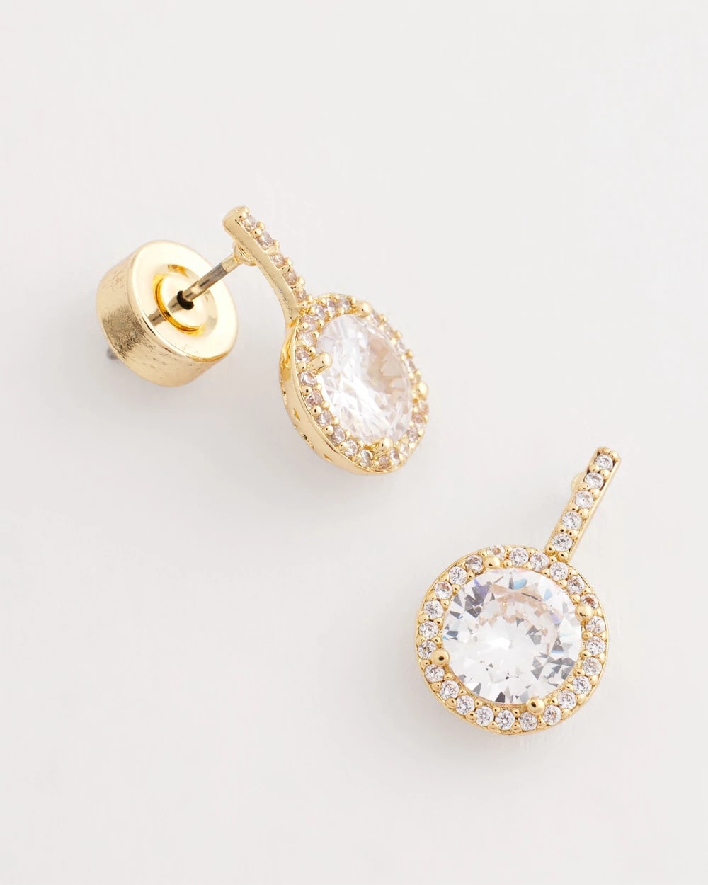 Sparkle for days—in these Goldtone Bezel Set Cubic Zirconia Halo Earrings. Dainty and all-over cubic zirconia.Featuring Chico’s proprietary No Droop® technology to create statement styles without the weight on your earlobes. Pair with Chico’s goldtone Tennis bracelet and necklace to complete this look.