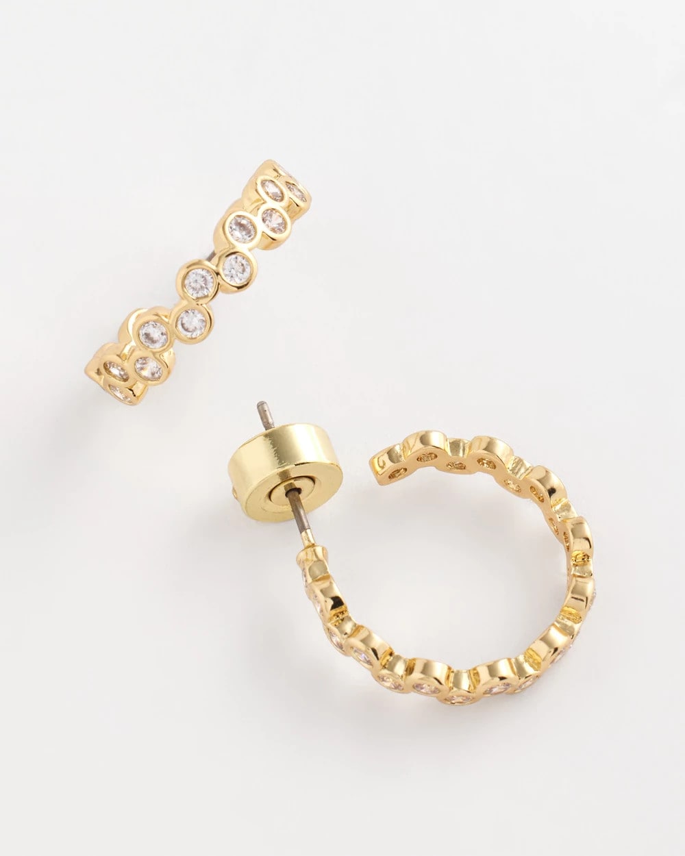 Sparkle for days—in these Cubic Zirconia Hoop Earrings. Dainty and all-over cubic zirconia.Featuring Chico’s proprietary No Droop® technology to create statement styles without the weight on your earlobes. Pair with Chico’s goldtone Tennis bracelet and necklace to complete this look.