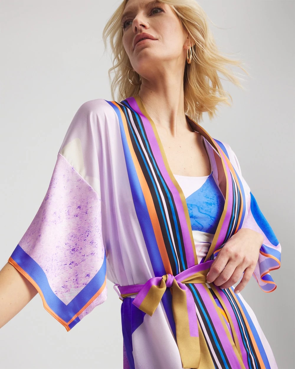 - Delight in this perfectly styled, fluid coverup that offers great ease of comfort & a tie front, to customize your very own style.