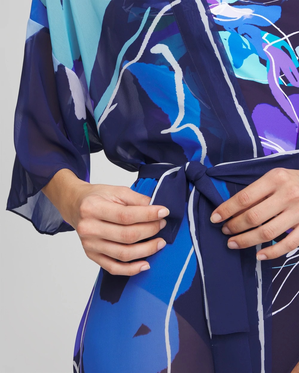 - Effortlessly chic, this flutter sleeve coverup exudes a touch of glam. This versatile semi-sheer flowy coverup is enhanced witha matching tie, for your added comfort & personal style.