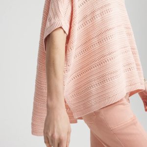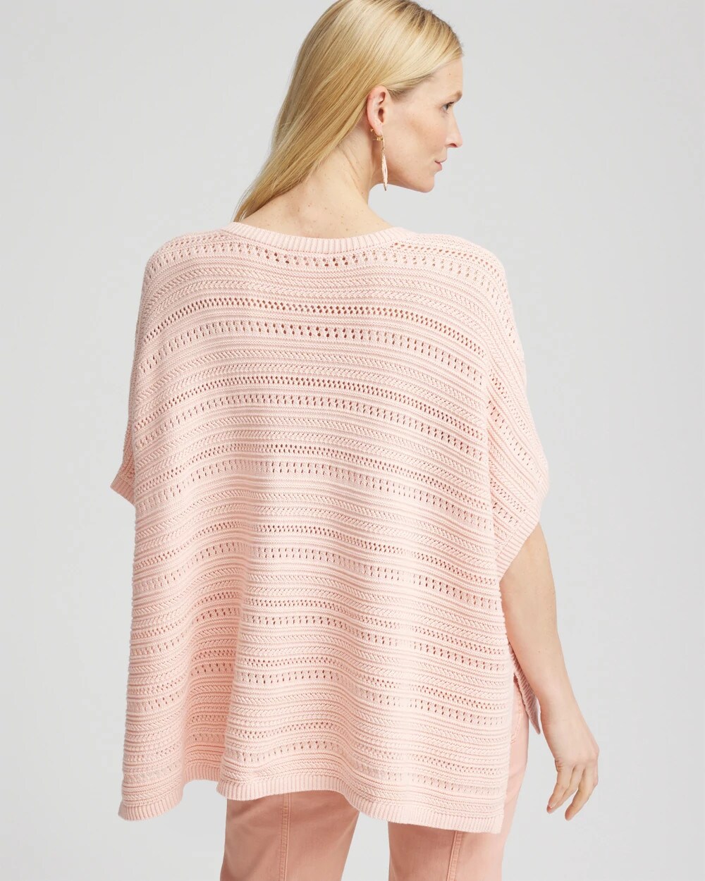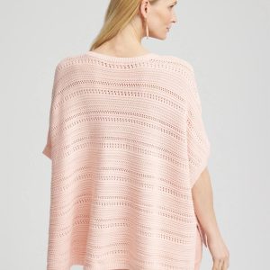 - Hi-lo hem poncho, v-neck and elbow-length sleeves.