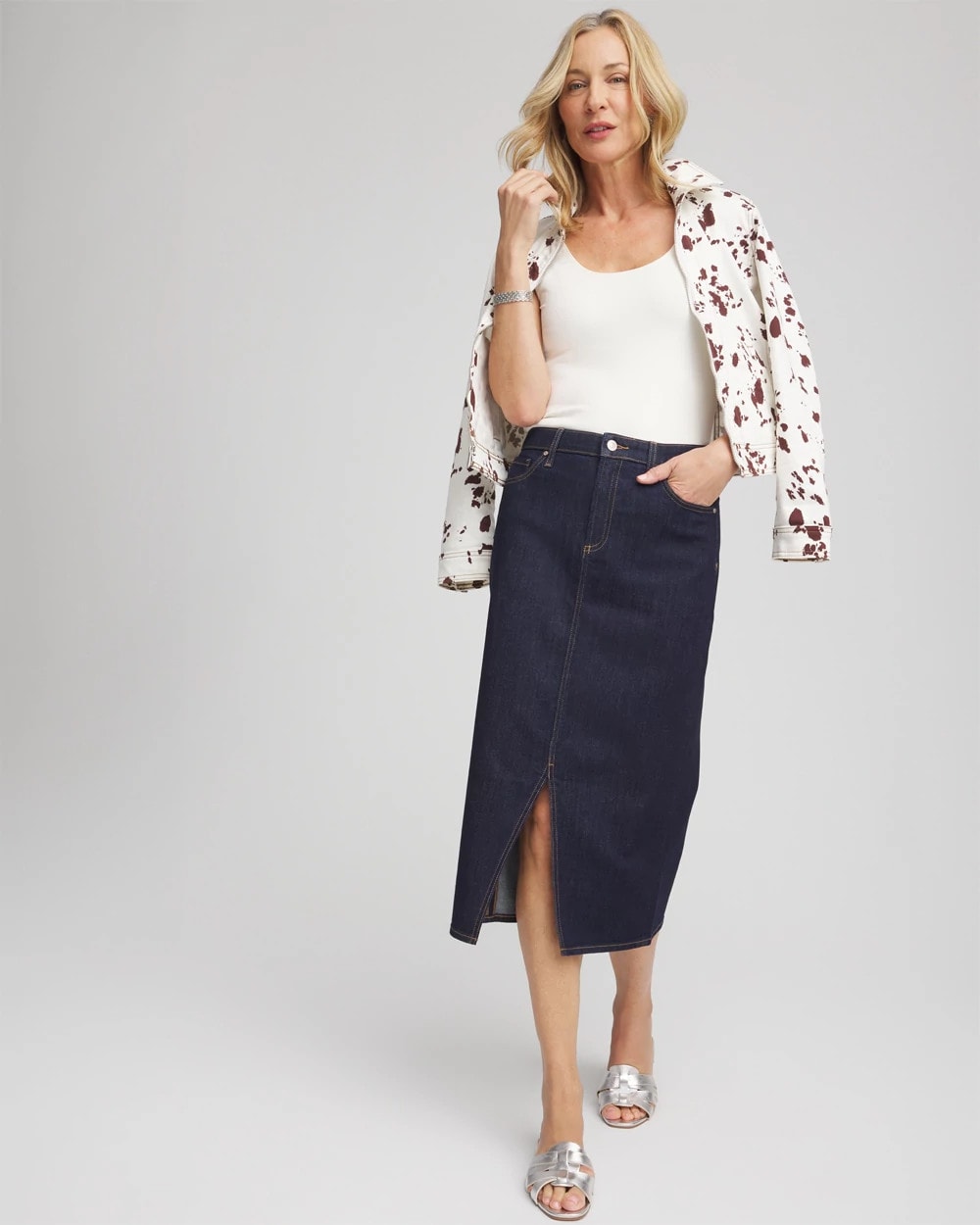 High-Rise Straight Stretch-Denim Skirt