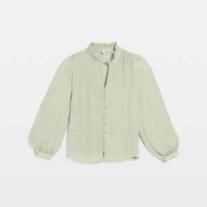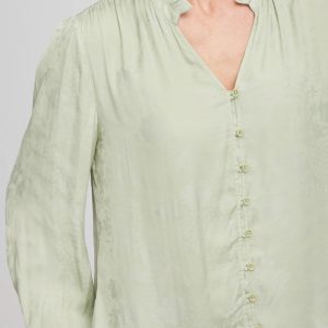 - Classic-fit long-sleeve splitneck blouse.