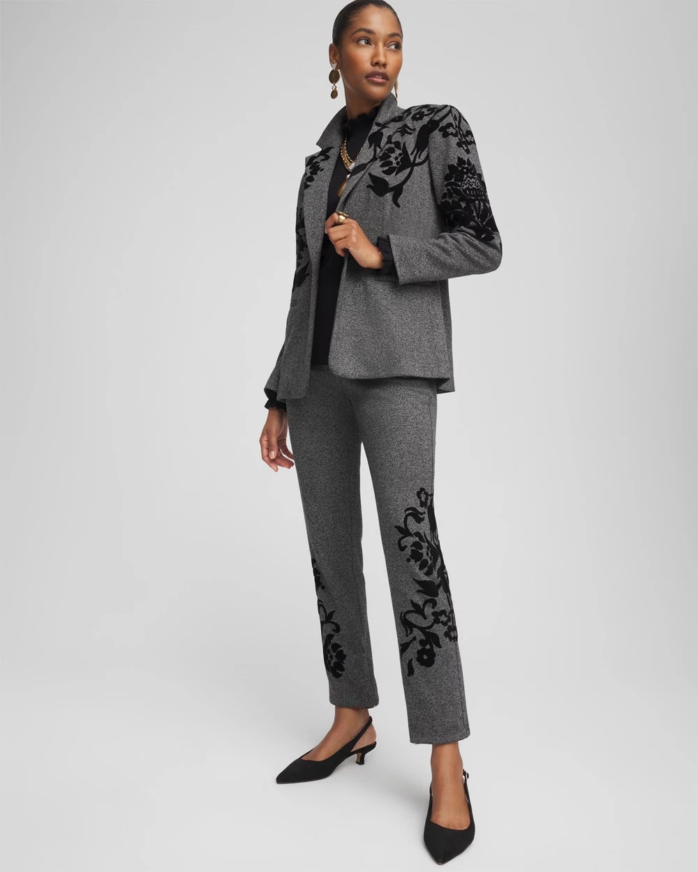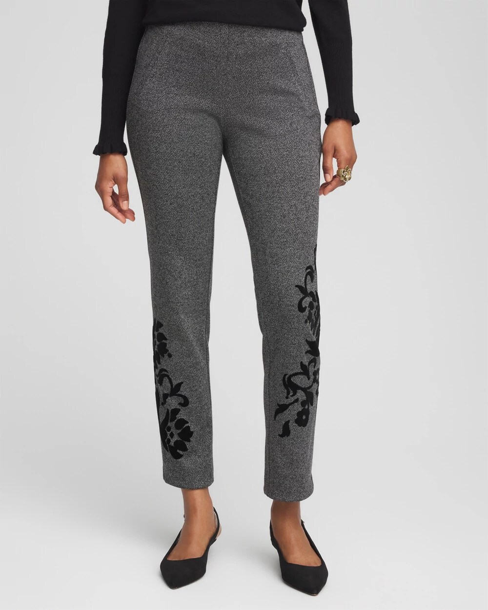 Meet the new finely tailored Juliet Flocked Menswear Ankle Pant. Featuring streamlined velvet detailing to add a modern touch. Our customer-favorite Juliet pants feature a So Slimming® 360 technology that smooths and slims your shape.