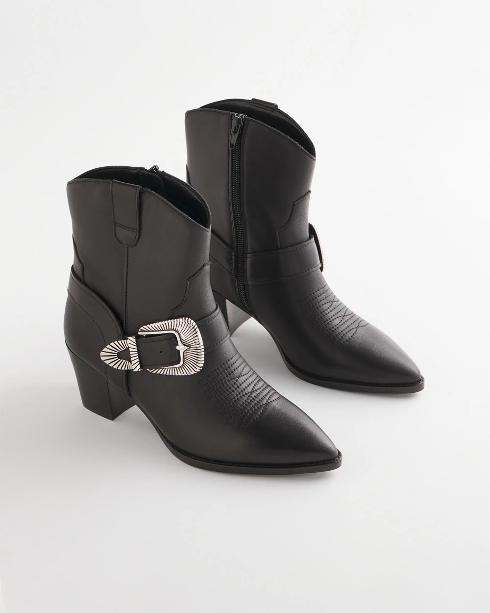The Kris Western Buckle Boots feature a cowgirl chic design. As always, expect all-day comfort with Chico’s Dual pod memory foam padded sock design. Made with genuine leather.
