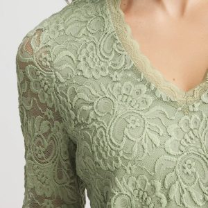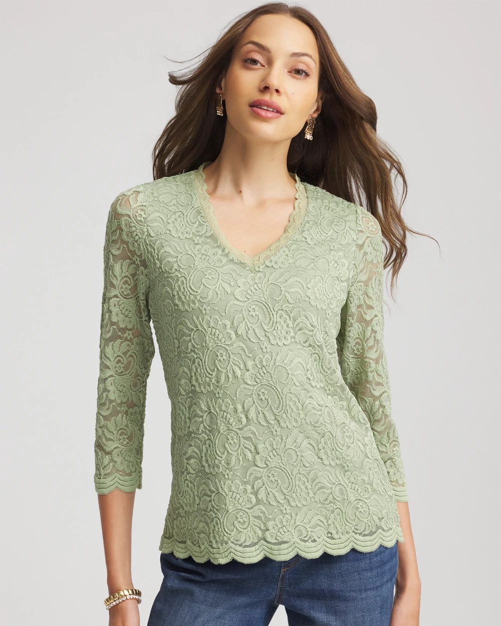 Quiet luxury helps to define thisLace Scallop-Hem Tee. Classic-fit silhouette with 3/4 length sleeves and a soft inner lining.