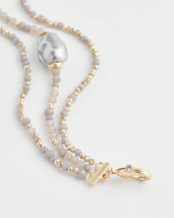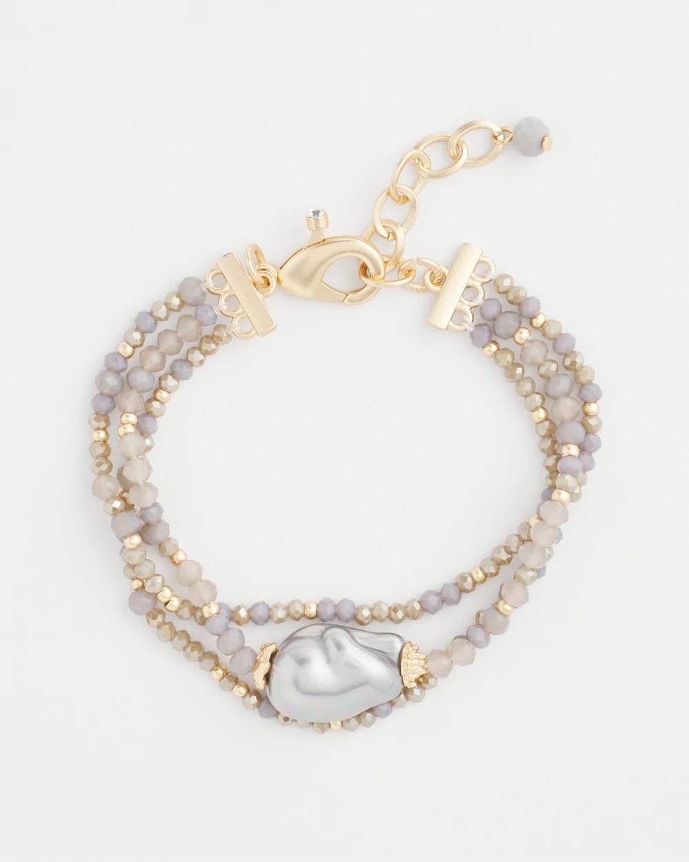 Instantly elevate your bracelet stack with this glistening Layered Beads Bracelet. Showcasing a pearlescent bead in the center, showcasing a special technique that recreates a natural pearl. This bracelet is a spin on our bestselling beaded bracelet motif. It’s three chains on a single clasp. Accented with glass beads stones for an effortless style. Pair with Chico’s Bracelet Bar bests.