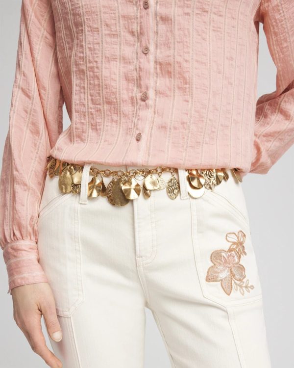 Accessorize with this brand new stunning style. Chico’s Leaf Chain Belt is the perfect way to elevate your look.