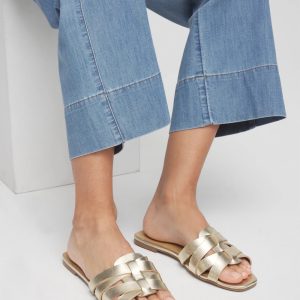 Inspired by the season’s beautiful nature, the new Leather Cassidy Cross-Strap Slide Shoes, handcrafted with high quality and nostalgic style, keep comfort in mind. Simple slip on and go shoe with a full vamp to stay secure and raw edge straps. Made with memory foam sock padding for all day or night comfort. Expert artisans embellish this pair with a metallic leather upper with fisherman detailing.