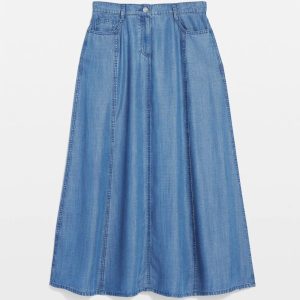 Polished style, ease, and comfort combine to make Chico’s new Lightweight Denim Fly Front Midi Skirt the perfect skirt. This designed features an easy wear, pull-on elastic back waistband and fly front. Belted fit with front and back pockets.