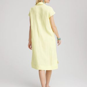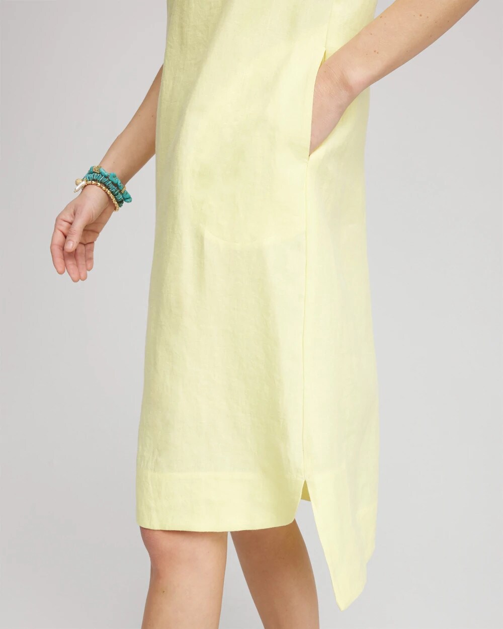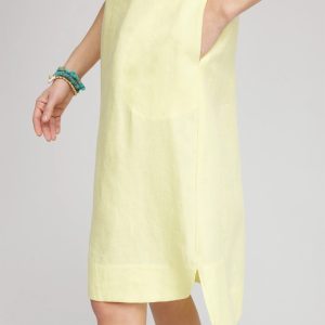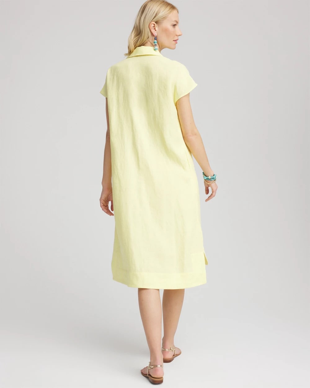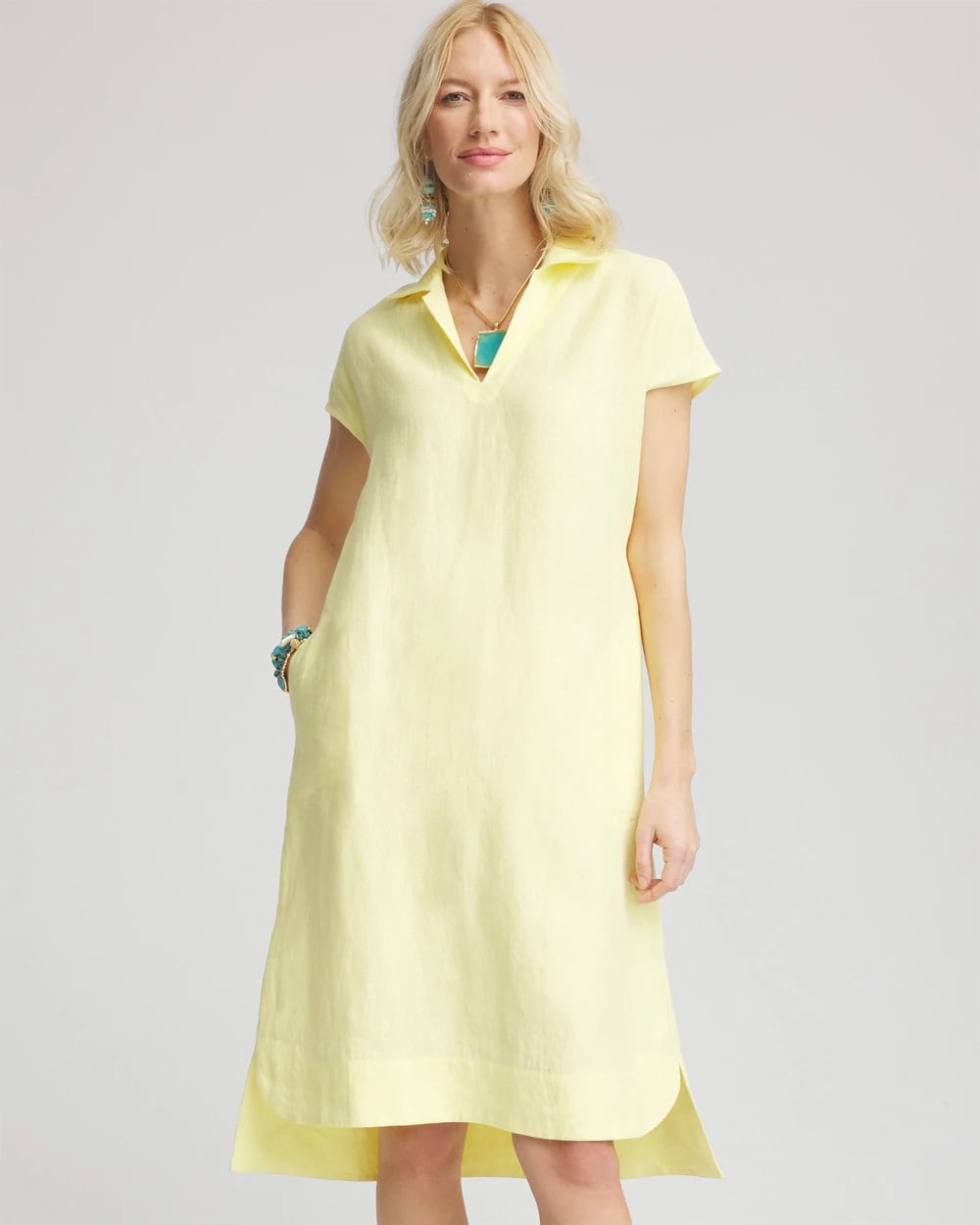 Luxurious linen is the quintessential summer fabric, it brings ease of flow and movement in this collared, high-low shirt tail hem dress. Accented with a self belt, pockets, and v-neckline, this summer dress comes in the season’s must-have hue.
