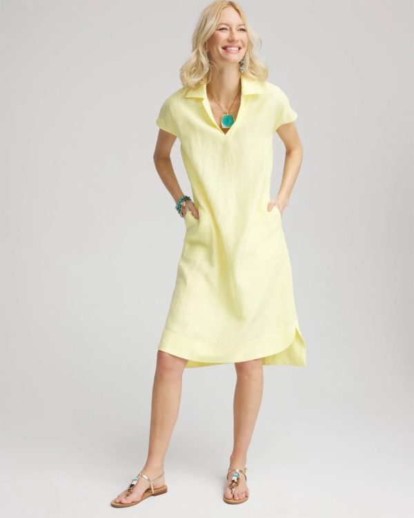 Luxurious linen is the quintessential summer fabric, it brings ease of flow and movement in this collared, high-low shirt tail hem dress. Accented with a self belt, pockets, and v-neckline, this summer dress comes in the season’s must-have hue.