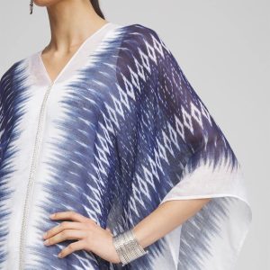 Perfect for your summer getaway, this kaftan features a luxuriously embellished placket, showcasing shimmering, light-catching silvertone beading on the front and back, along with a stunning graphic print. Pair with a head to toe alabaster outfit.
