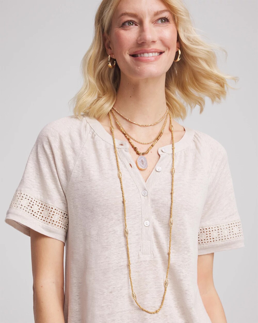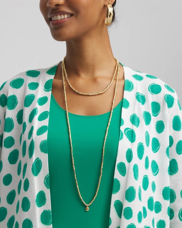 The perfect base layering strand, or stunning necklace to wear all by itself. Add this goldtone, beaded single or convertible double-strand necklace to your jewelry staples collection. Mixed texture, crinkle, and smooth beading. Mix and match with like pieces from Chico’s new Fashion Basic Collection.