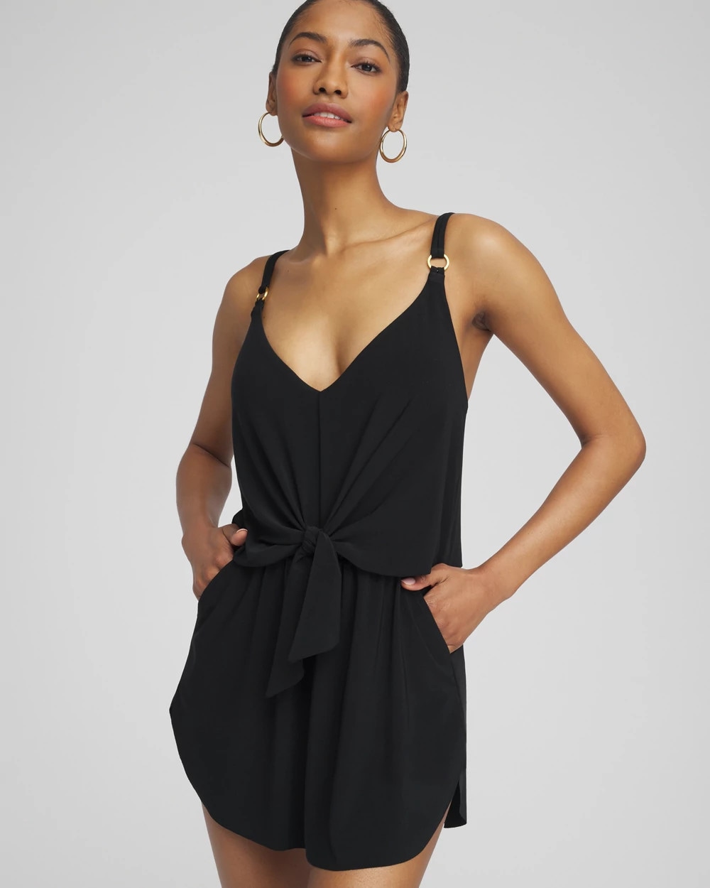Feel confident in and out of the water in our Magicsuit Obi One Kami Swim Dress. Designed with an adjustable front tie for versatility, this chicly styled dress with pockets has underneath a sleek slimming one piece swimsuit. Pair it with a lightweight coverup and enjoy your time by the poolside.