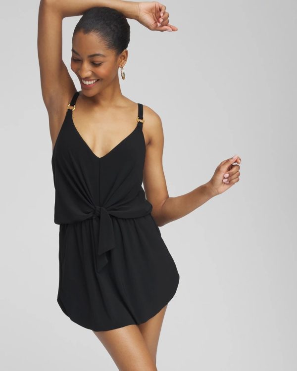 Feel confident in and out of the water in our Magicsuit Obi One Kami Swim Dress. Designed with an adjustable front tie for versatility, this chicly styled dress with pockets has underneath a sleek slimming one piece swimsuit. Pair it with a lightweight coverup and enjoy your time by the poolside.