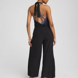 - Halter tie closure. Ankle length palazzo pants with pockets.