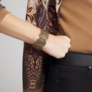 Rich metals and a medallion design help define this Medallion Stretch Bracelet. Experience feel-good style with this easy to wear, slip-on bracelet, and pair with pieces from our Collector’s Stack Collection.