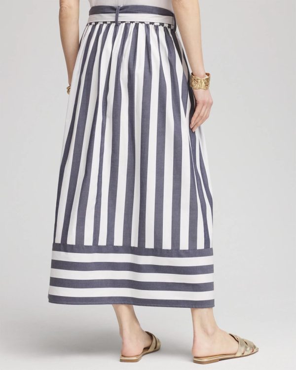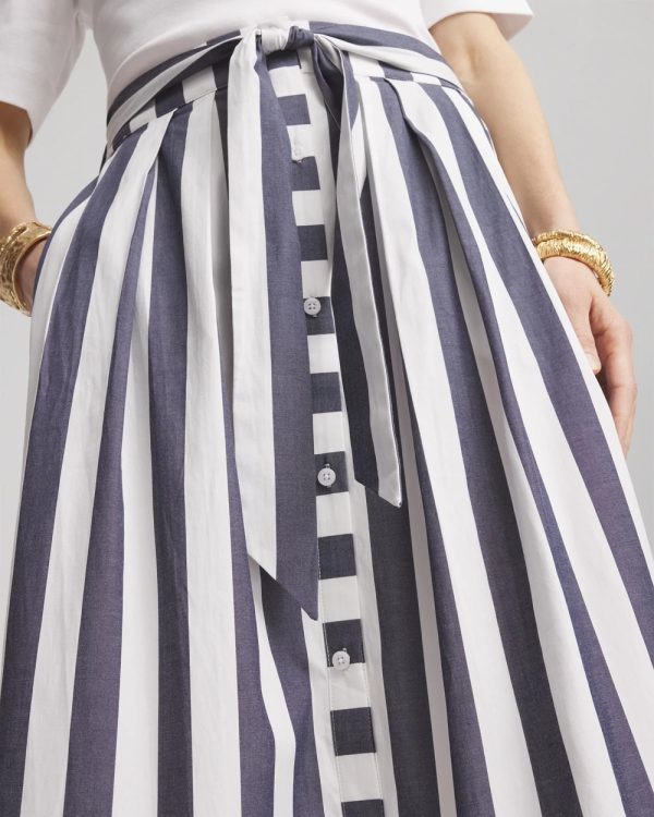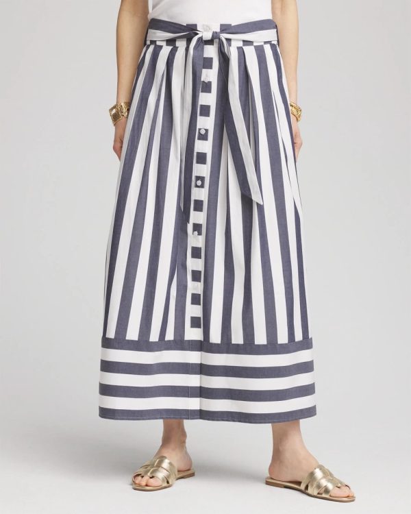 Featuring a button-down front, elastic waist with a tie-front. Flawless fit elastic waist with a stylish combination of horizontal and vertical stripes. Showcasing a relaxed silhouette, you will love the way you look and feel in this midi length skirt.
