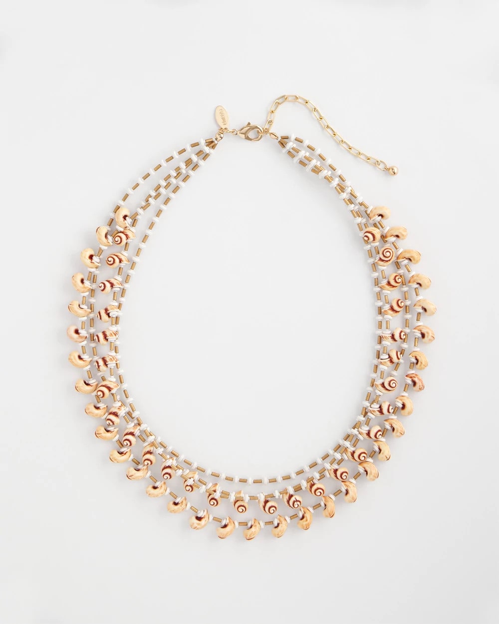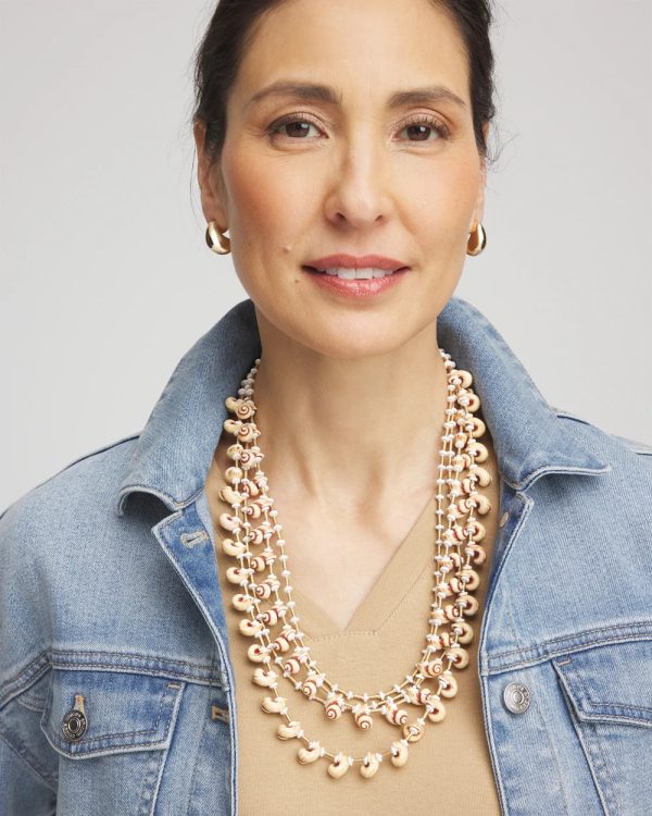 Showcasing a special technique to recreate the effect of multiple strands of mini Sundial shells. Featuring a lobster-claw closure. Style your outerwear with these 23 inches of seashells and pair with all your neutral hues. Pair with other pieces from Chico’s Ocean Wonders Collection.