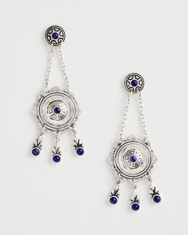 Bohemian-inspired medallion drop earrings merge with the royalty of lapis lazuli stone and platinum-inspired silver tones to create these high-style earrings. Featuring Chico’s proprietary No Droop® technology to create statement styles without the weight on your earlobes.