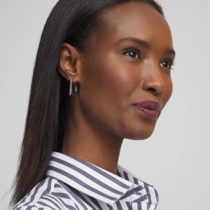 The No Droop®Silver Tone Square Hoops have day-to-night style. This design features a modern square front to back hoop. Pair them with everyday or party pieces for a unique final touch.