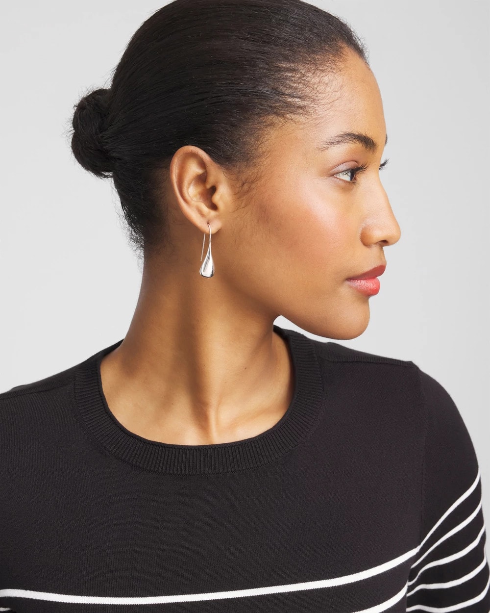 No Droop™ Silver Tone Teardrop Threader Earrings