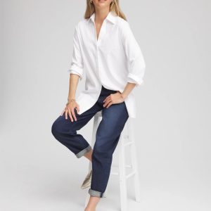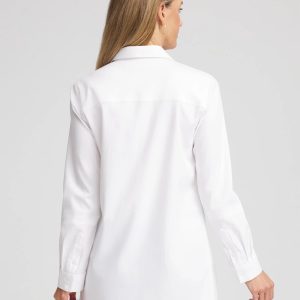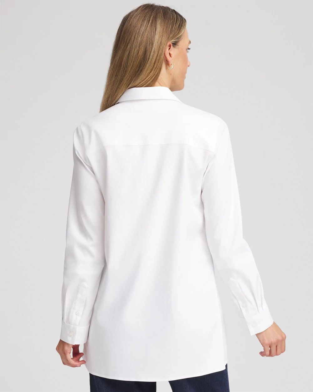 Our instantly bestselling No Iron™ tunic showcasing an ode to exquisite, timeless style with embroidery detailing. We can’t keep our classic fit No Iron™ stretch-sateen tunics in stock. This ready-to-wear right out of the dryer (without the hassle of ironing) top moves with you effortlessly for all-day comfort. It’s an A-line silhouette with a point collar. Flawless every time in any season, whether on its own or as a base layer. Designed with a flattering straight hem and gusset. This button front pairs perfectly with jeans or pants.
