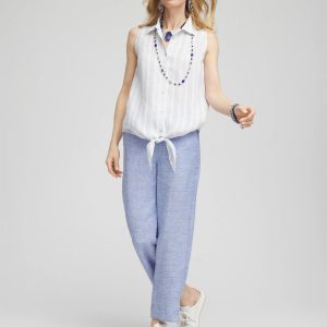 If you love our No Iron™ shirts, you need this Linen No Iron™ Tie-Front Sleeveless Shirt. This ready-to-wear right-out-of-the-dryer (without the hassle of ironing) top moves with you effortlessly for all-day comfort. It’s a perfect fit every time in any season, whether on its own or as a base layer. Designed with a flattering shirttail hem, this button front pairs perfectly with jeans or pants.