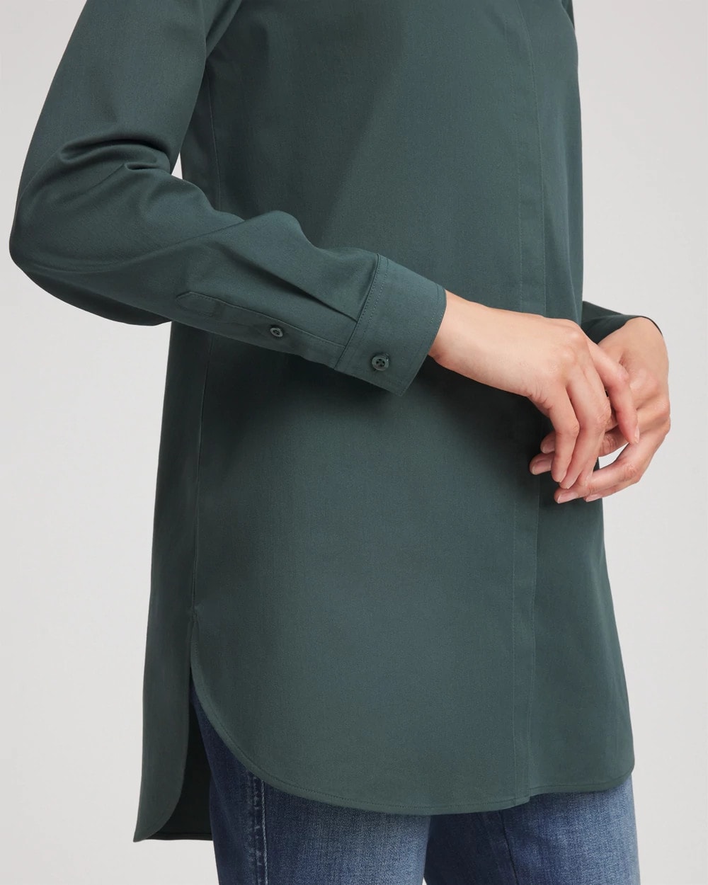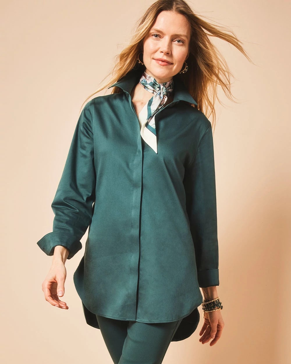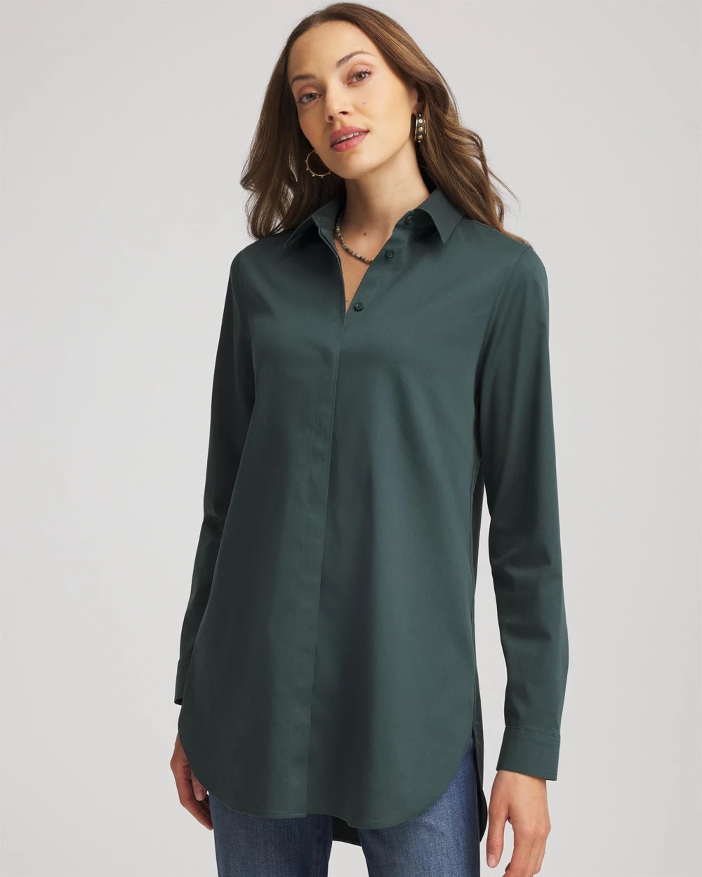 Our instantly bestselling No Iron™ Tunic showcasing an ode to rich hues. We can’t keep our classic-fit No Iron™ stretch-sateen tunics in stock. This ready-to-wear right out of the dryer (without the hassle of ironing) top moves with you effortlessly for all-day comfort. It’s a straight silhouette with a point collar. Flawless every time in any season, whether on its own or as a base layer. Designed with a flattering shirttail hem and gusset. This button front pairs perfectly with jeans or pants.