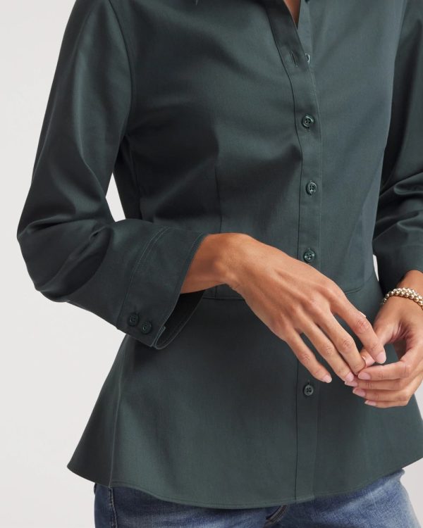 Our instantly bestselling No Iron™ shirt showcasing a stunning peplum waist. We can’t keep our classic-fit No Iron™ stretch-sateen shirts in stock. This ready-to-wear right out of the dryer (without the hassle of ironing) top moves with you effortlessly for all-day comfort. It’s a peplum silhouette with a point collar. Flawless every time in any season, whether on its own or as a base layer. This button front pairs perfectly with jeans or pants.