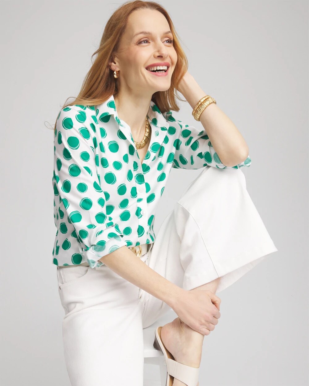 No Iron™ Polka-Dot Sateen Shirt