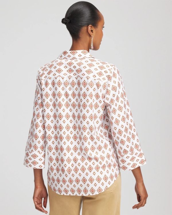 Our instantly bestselling No Iron™ shirt showcasing a geo-print motif. We can’t keep our classic fit No Iron™ stretch-sateen shirts in stock. This ready-to-wear right out of the dryer (without the hassle of ironing) top moves with you effortlessly for all-day comfort. It’s a straight silhouette with a point collar. Flawless every time in any season, whether on its own or as a base layer. Designed with a stylish tie-front and gusset. This button front pairs perfectly with jeans or pants.