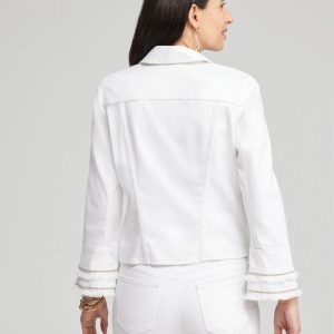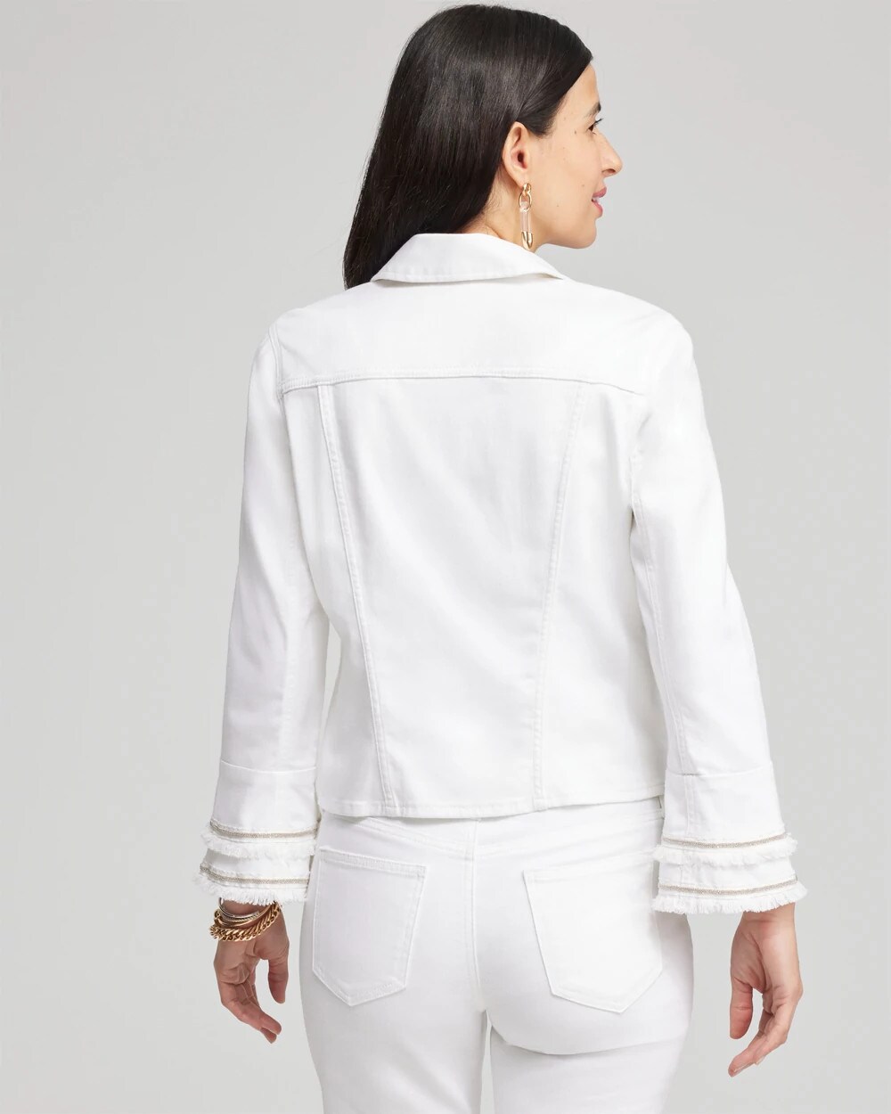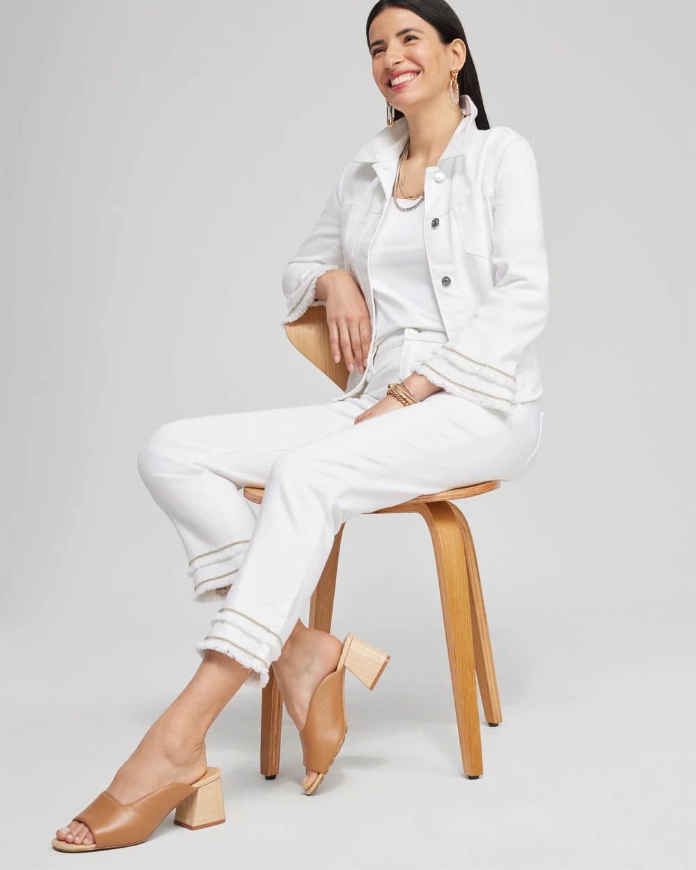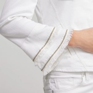 The No Stain Double Fray Denim Jacket is anything but average. This topper has all the hallmarks of a traditional jean jacket, but the double fray and ball chain details on the flute sleeves give this design a fashion edge. For a modern classic look, pair it with our Girlfriend crops and a No Iron Stretch Shirt.
