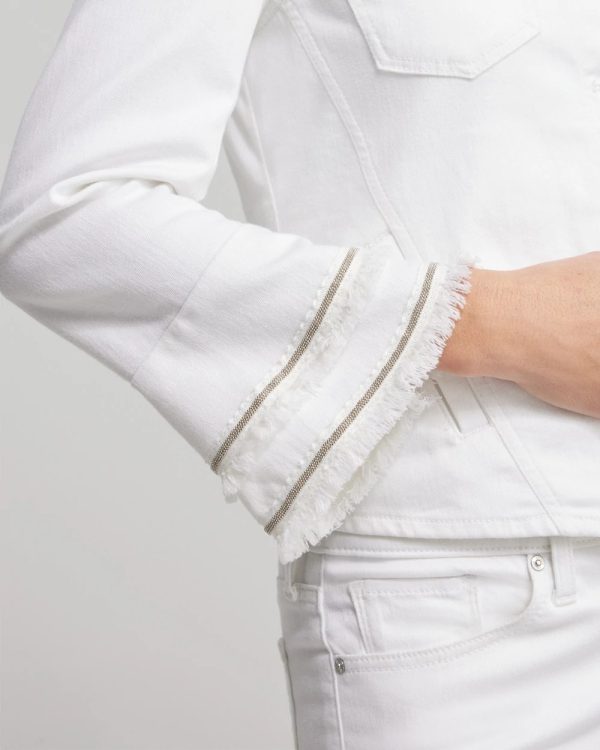 The No Stain Double Fray Denim Jacket is anything but average. This topper has all the hallmarks of a traditional jean jacket, but the double fray and ball chain details on the flute sleeves give this design a fashion edge. For a modern classic look, pair it with our Girlfriend crops and a No Iron Stretch Shirt.