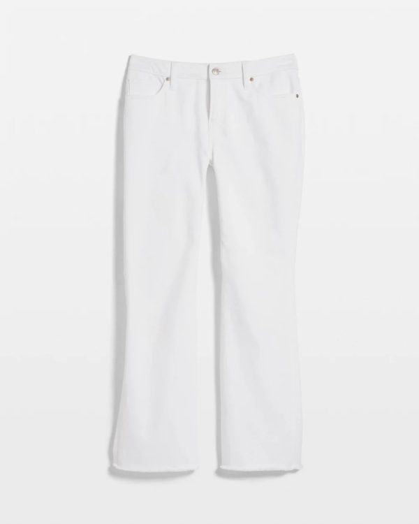 Try on our newest style, the Petite No Stain Girlfriend Fray Hem Kick Flares. This debut line of So Slimming® bottoms are still made with our stretch fabric that smooths your waistline and a classic slim fit for from waist to thigh, now with a flare fray hem. Powered by Stain-Repel, Bright-White™ technology, they stay white longer and repel water-based spills. Pair this new design with tees and fashion tops.