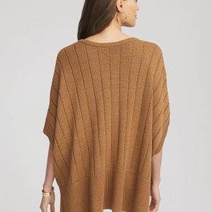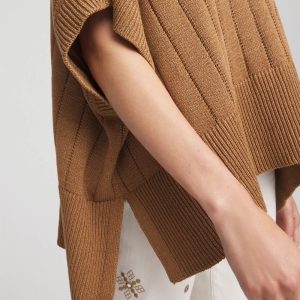 - Relaxed-fit poncho with tacked down sides.