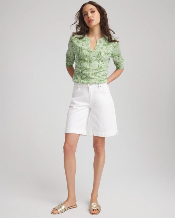 The perfect layering tee. Crafted with breathable, soft cotton slub and cut for a casual fit, this Henley shirt is detailed with shell-inspired buttons at the placket and a palm-frond-motif in salted lime hues. Wear on its own with jeans, matching pants or under a lightweight jacket.