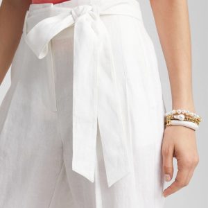 These new spring and summer must-have Belted Pleated Wide-Leg Linen Pants feature flattering detailing with a removable tie-front belt. Showcasing 100% luxurious linen fabric.
