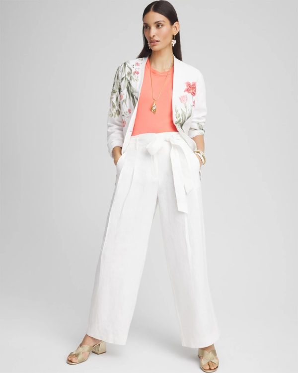 These new spring and summer must-have Belted Pleated Wide-Leg Linen Pants feature flattering detailing with a removable tie-front belt. Showcasing 100% luxurious linen fabric.