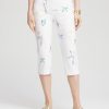 The perfect pair of pull-on crops for the season. Cut for a slim leg, straight silhouette with cutwork hemline recreating a starfish effect. Showcasing Chico’s favored So Slimming® inner tummy panel for slimming and trimming your shape for a smooth look and feel. Angled, front welt pockets enhance the effect. Featuring faux back welt pockets. The rise sits just below the natural waist, offering comfort and style for everyday or party wear.