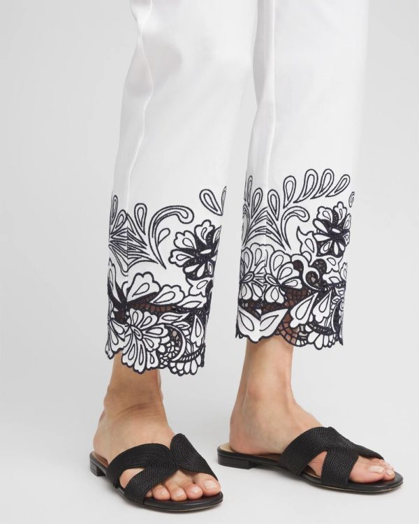 Add these new embroidered-eyelet cutwork Brigitte™ 180 Lace Embroidered Cropped Pants to your wardrobe. Showcasing Chico’s signature So Slimming® built-in shaping solution, extending 180 degrees around.