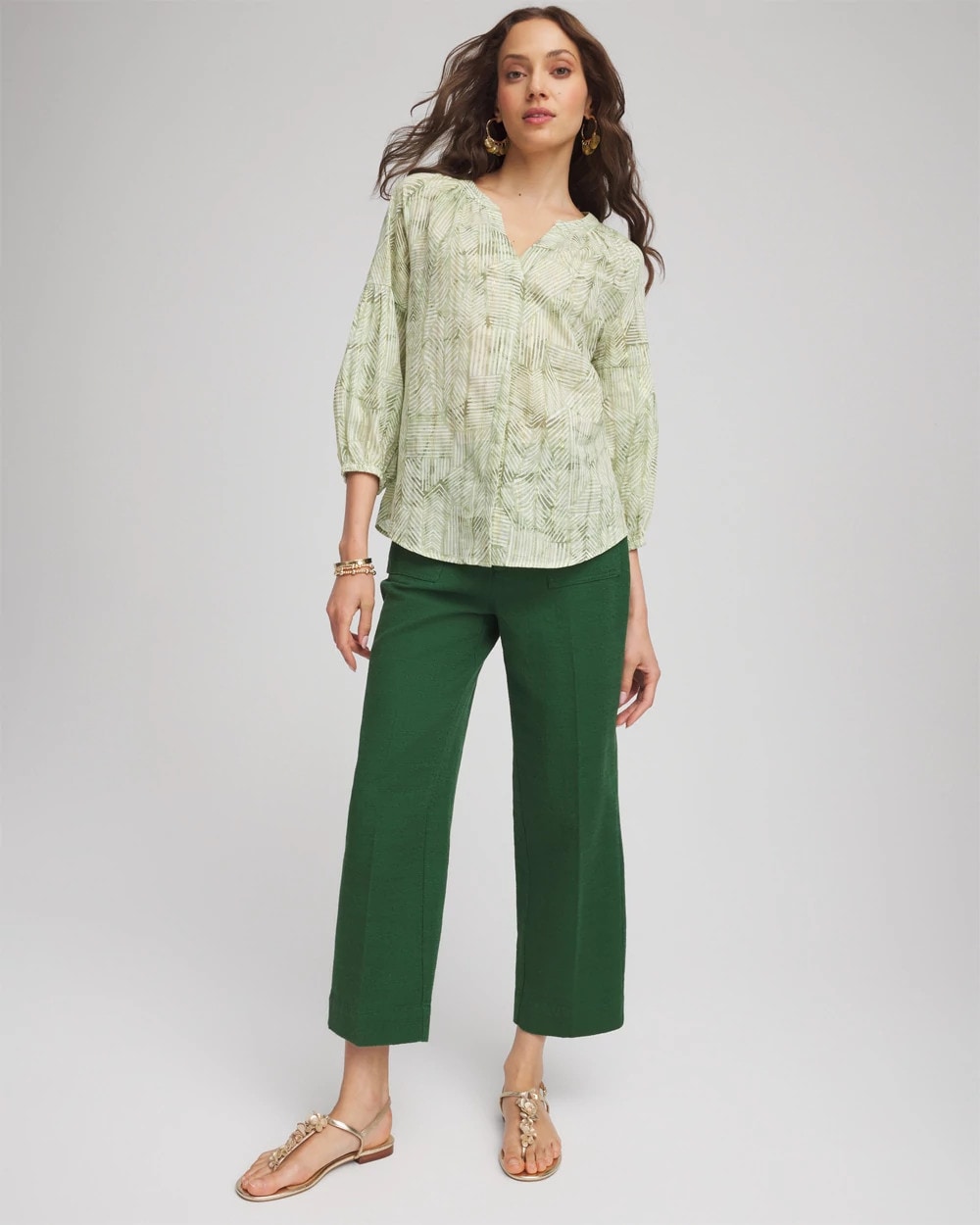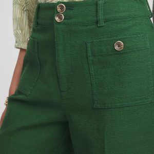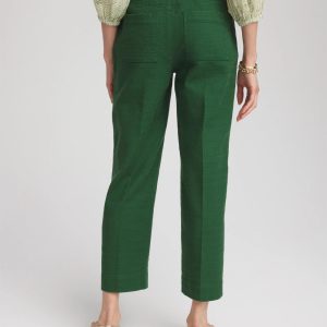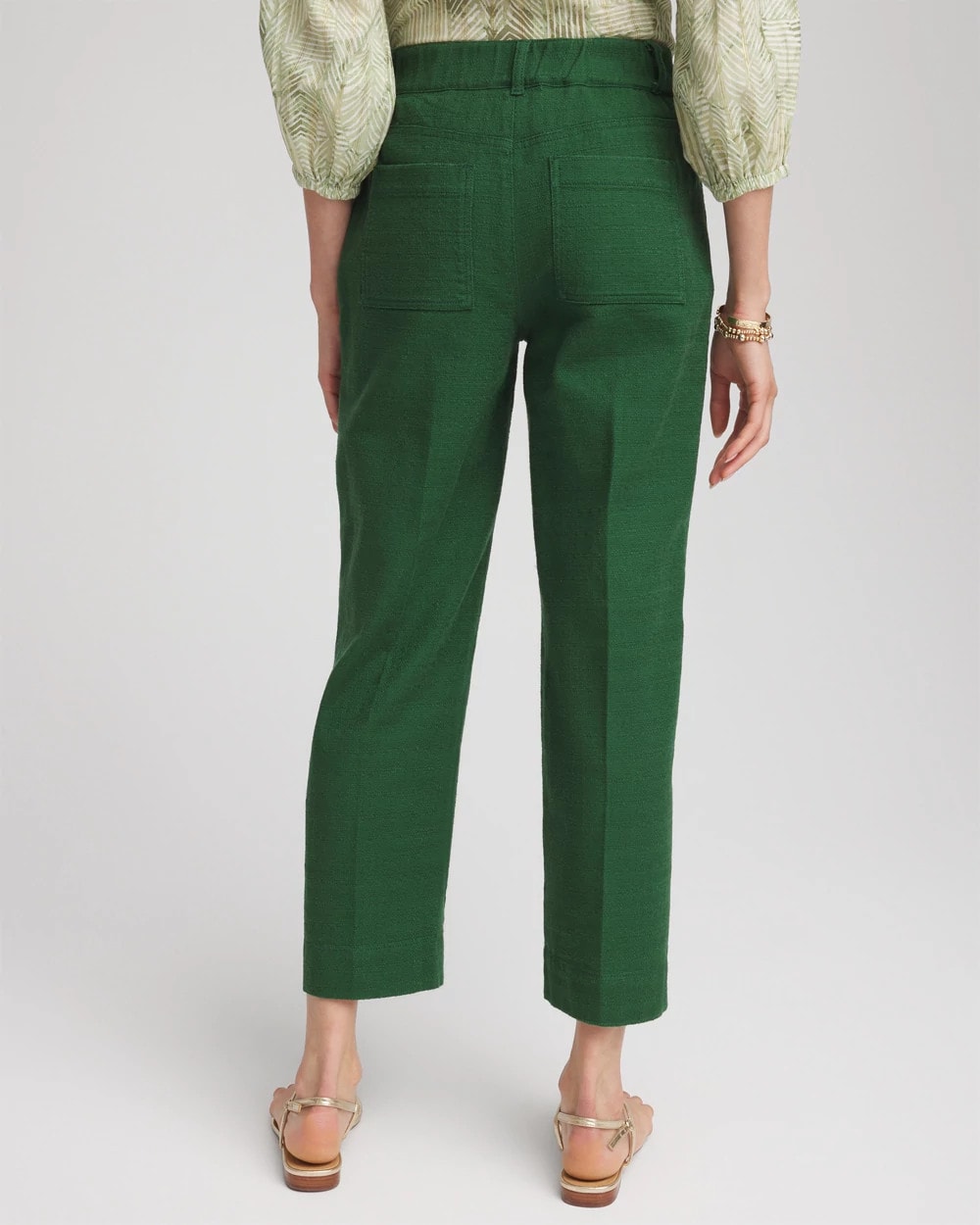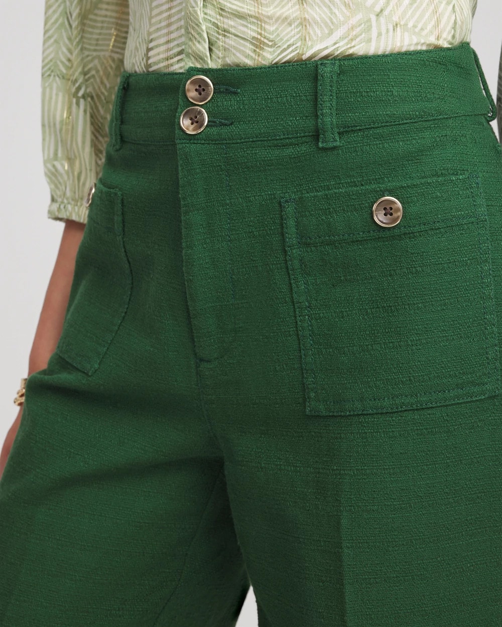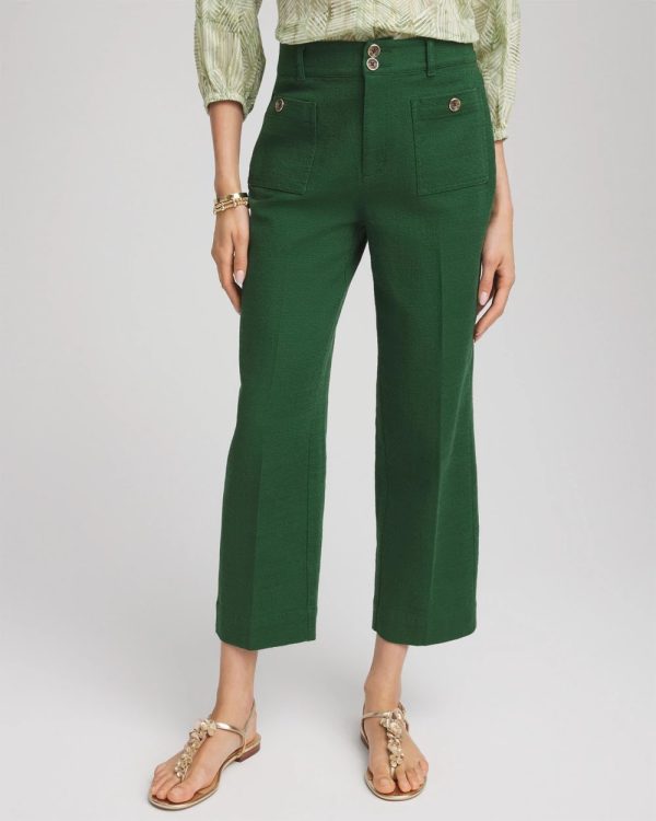 Expertly tailored—signature ’70s inspired straight, trouser-style cropped pants with modern accents. Showcasing high-style appeal with front and back patch pockets.