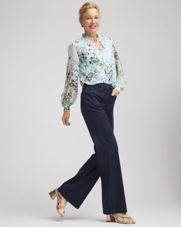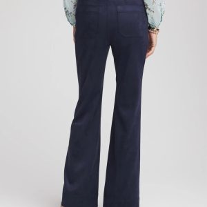 Expertly tailored—signature ’70s inspired straight, trouser-style bootcut ankle pants with a soft, delicate vegan suede motif for modern appeal. Showcasing thoughtful design elements including front and back patch pockets.