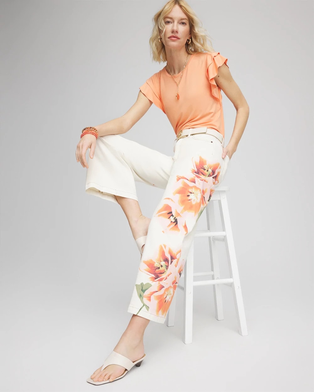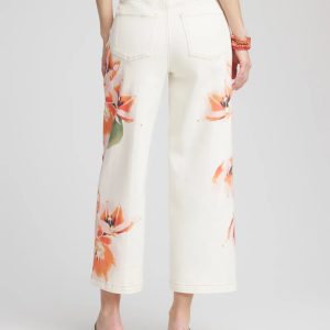 Made with comfortable alabaster-wash twill denim, these high-rise jeans are defined by a relaxed, wide-leg silhouette and cropped fit. Detailed with Chico’s signature island-inspired tropical floral print at each leg. Showcasing a slimming interior panel that lifts and shapes using exclusive So Slimming® technology.
