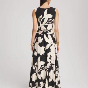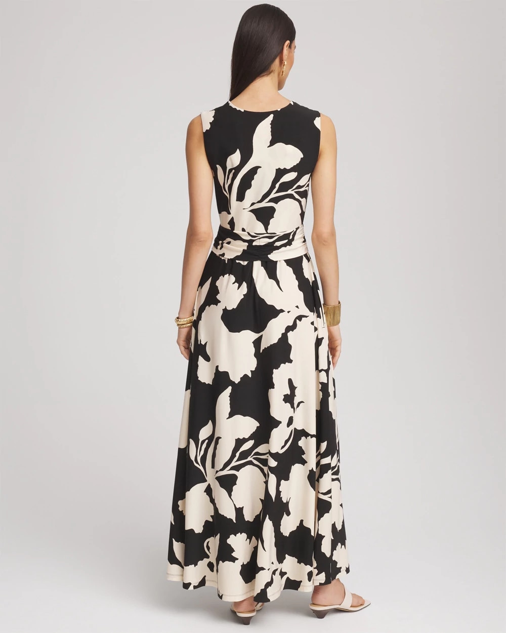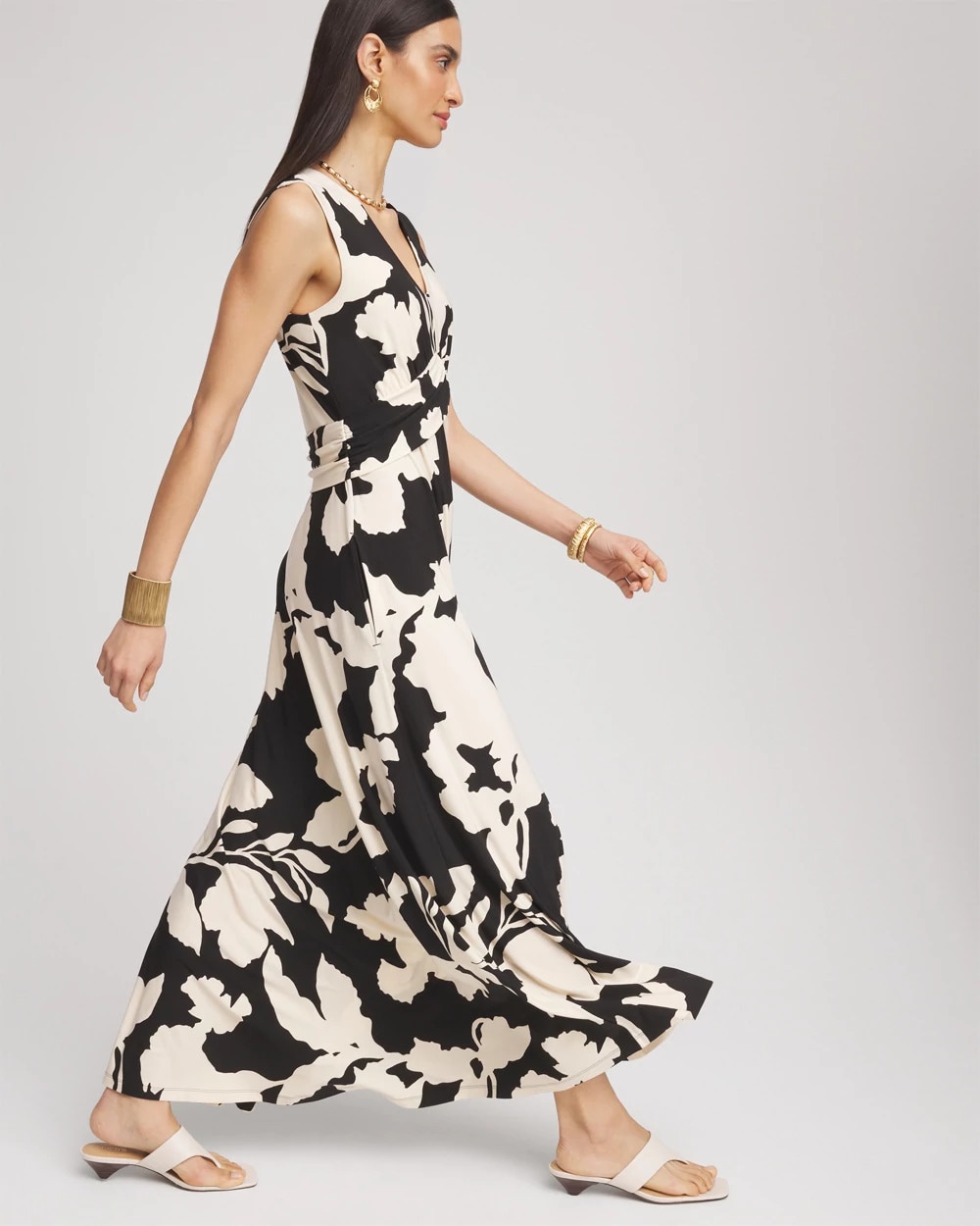 An essential dress, elevated and made utterly stunning, Chico’s new Ruched Jersey Maxi Dress. Showcasing a full-ruched front placket and expertly crafted floral design. Featuring a flattering fit, sleeveless A-line silhouette, and v-neckline with alined front and back bodice.