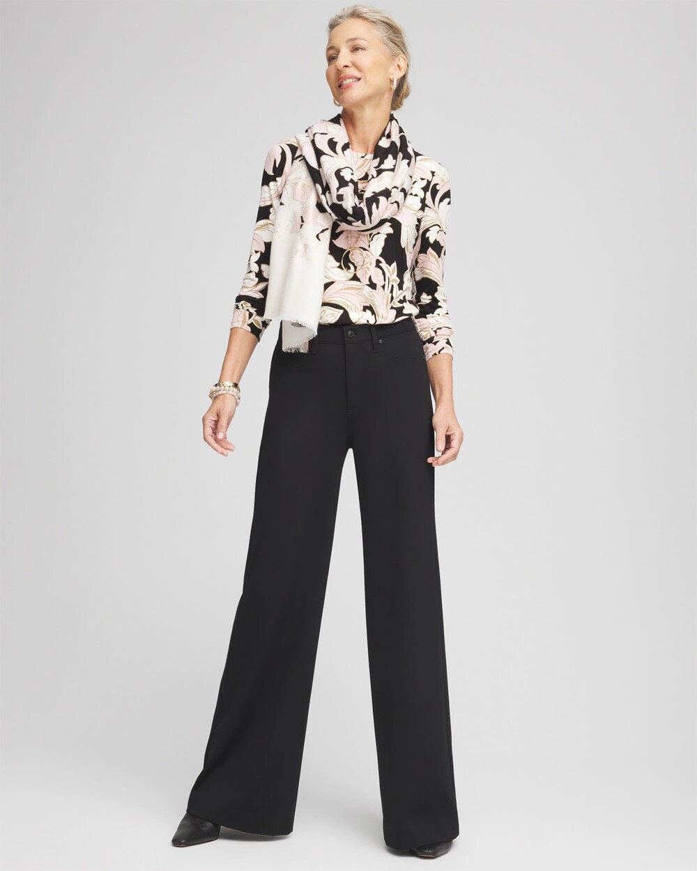 - 5-pocket wide-leg design, Chico’s Ponte™ knit fabric has a flattering, forgiving, and cling-free drape.