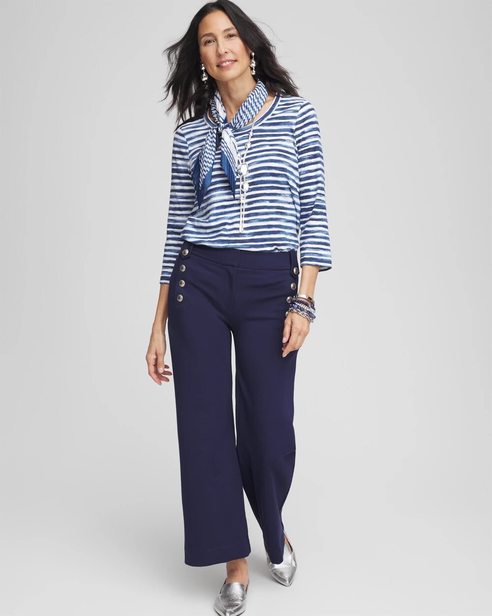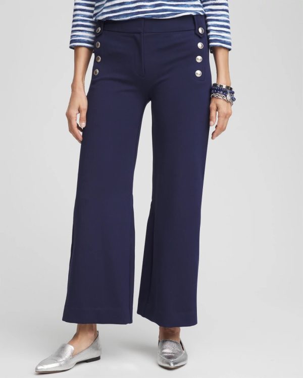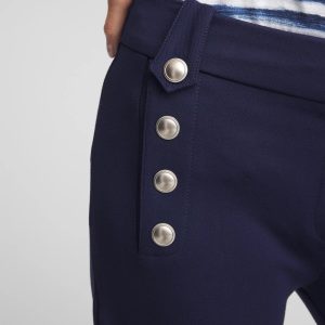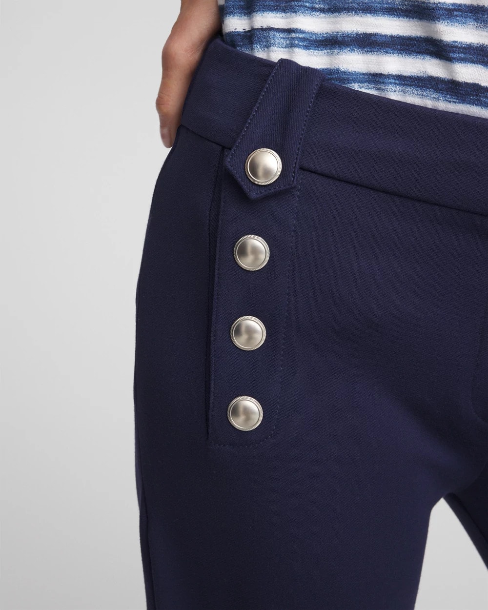 Embrace your inner sailor with these new Button Knit Twill Cropped Pants featuring nautical polished crest-embossed button detailing.