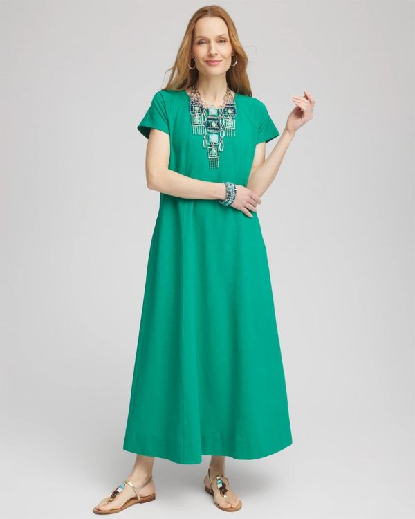 It’s time to elevate your 2025 summer dress wardrobe with this new Short-Sleeved Maxi Dress by Chico’s. Showcasing tailored seam detailing and on-seam pockets.